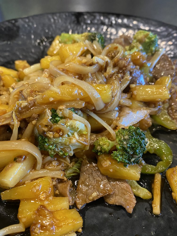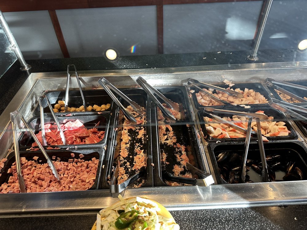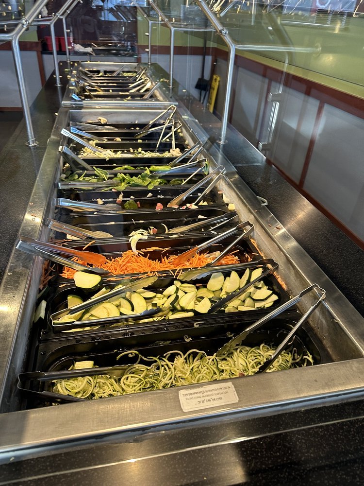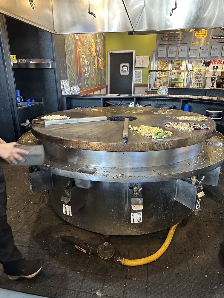 “ They had a large variety of veggies, proteins, aromatics and sauces. There were 4 types of starches: chow mein noodles, yakisoba, pad thai noodles, and rice. I felt like I was being my own cook and deciding from my pantry on what I wanted in my dish and decided to do chow mein on my first round. I selected most of the veggies, and mixed imitation crab and pollock slices as my protein. Their house sauce before was full of flavor. The cooks stir fried it to perfection. They were quick and kept the line moving for others to place their concoctions on the grill too. The ambiance was loud and full of energy because it was out last day in Denver and we were travelling with a bunch of kids and parents who were excited to fly back home. It was entertaining to watch the cooks stirfry the dishes on a large, round flat iron grill, then clean the spot where your dish was cooked, and a new dish placed on the newly clean spot to be grilled. The chefs were efficient in moving the line of customers with their bowls to be cooked. I used the same sized bowl for the stirfry to fill up their soft served ice cream and topped it off with crushed peanuts and a cone for my dessert. Overall, the food was average. Adding a little soy sauce enhanced your meal. The soft serve made our meal complete. ”