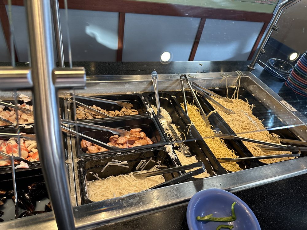 “ We went yesterday for my nephew's birthday. He loves the place. Our food was good as usual. Place was clean and not too crowded. There were 9 of us and love that they have accommodations for us to sit without going through a whole process of pushing tables together. Our table assistant was Victor and he was GREAT. Very helpful and attentive. He was pleasant and fun. Cleared our dishes right away so that we had room to enjoy ourselves. He was on top of it! He offered to help take a group photo when he saw us posing and snapping selfies. Very friendly and made our experience better. I gave the trip a 4 out of 5 because I still miss having shrimp on the lunch menu. It's been a while but you used to have it. I still like the mussels and other seafood selections. Overall a good experience and good meal. The cooking crew was good also. Offered a smile and eye contact when handed us our food. Little things matter. We will definitely be back. ”